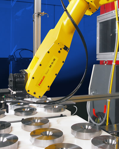 Automation at On-Shore USA is an enabler. Manufacturing efficiency revolves around machine up-time. Robots stay focused on loading and unloading machines for maximum spindle up-time. Offloading unskilled tasks to a robot enables the machine operator to focus primarily on skilled tasks. With assistance from a robot the machine/robot-cell operator has more time for quality control, process monitoring and improvement. It can be readily seen how this combination improves both efficiency and quality.